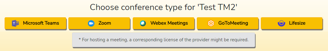 The next step is to choose the conference type and follow the steps provided by the conference system (Microsoft Teams, Zoom, etc) to create and start the conference.